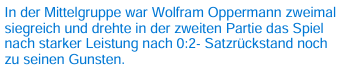 In der Mittelgruppe dominierte Matthias Pfeifer in seinem Spiel und gewann in 4 Sätzen.