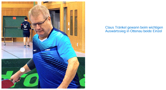 Andreas Paul blieb bisher in allen 6 Einzeln der neuen Saison unbesiegt und war wie Thorsten Paul, Claus Tränkel und Matthias Pfeifer gegen Weitenung zweimal erfolgreich